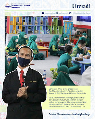 Program literasi yang dijalankan oleh SMP Fastabiqul Khairat merupakan sebuah gerakan yang bertujuan agar siswa memiliki budaya membaca dan menulis sehingga tercipta pembelajaran sepanjang hayat. Ada 6 ragam literasi diantaranya : Edukasi Pemustaka, Jadwal Membaca, Pojok Baca, Pohon Literasi dan Penerbitan Buku. Harapan kedepan dari generasi pembaca hari ini, kelak mereka akan menjadi seorang pemimpin “Today a Reader, Tomorrow a Leader”.